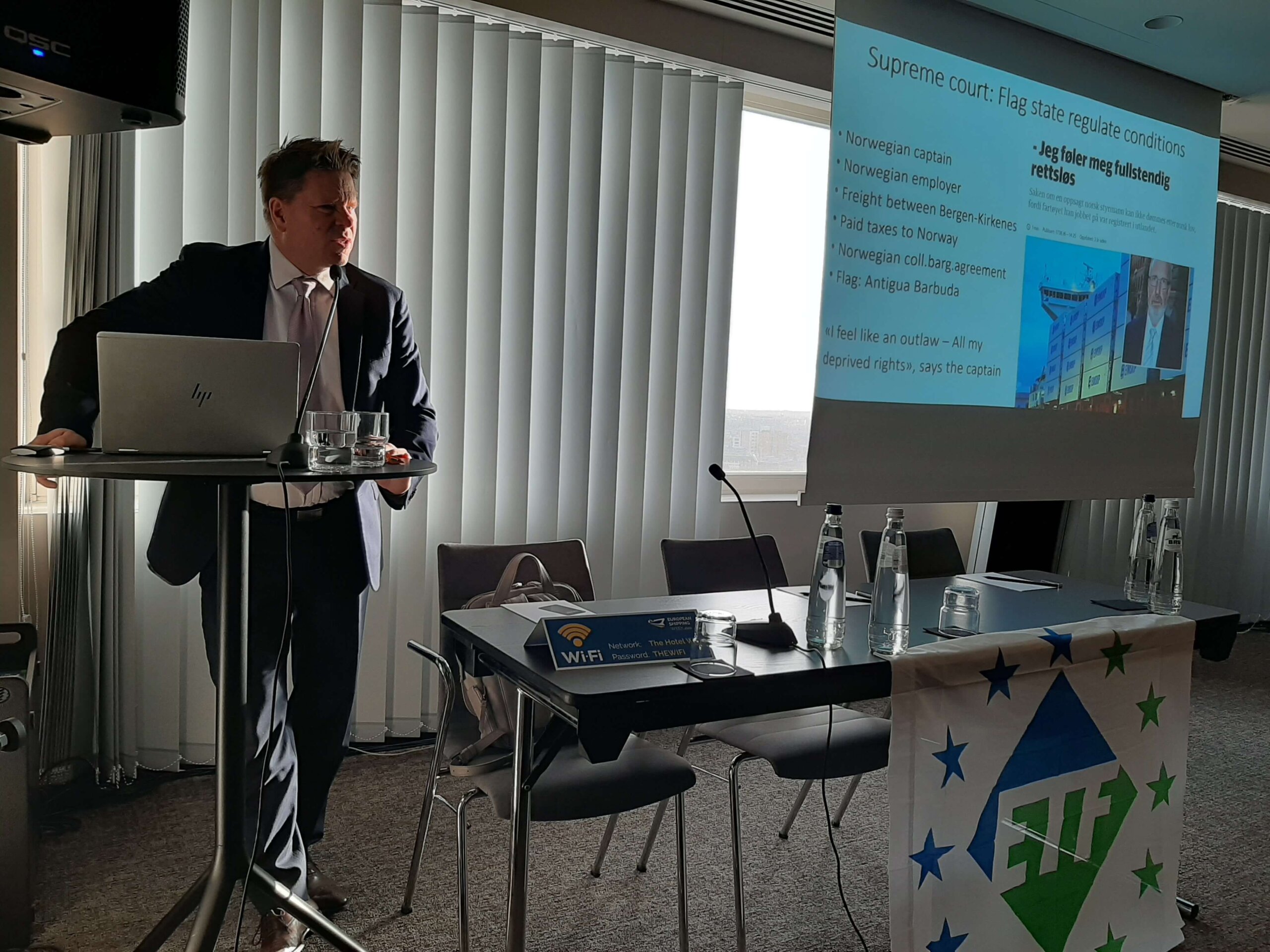 The Norwegian participants presented the current state of shipping in Norway and their work in trying to prevent social dumping. Terje Hernes Pettersen from the Norwegian Seafarers’ Union explained the use of flags of convenience and the consequent avoidance of paying decent wages by shipowners, and Hanna Vik Furuseth from the Scandinavian Institute of Maritime Law presented the new legislative proposal that they prepared on the request of the Seafarers’ Union. Its main aim is to ensure Norwegian wage and working conditions in Norwegian waters and on the Norwegian continental shelf. The case for such a change was made even more clear with the contribution of shop steward Kim Lekva, who presented the everyday reality of shipping in Norway and emphasised the negative impacts of the lowering of salaries on young seafarers and local communities.