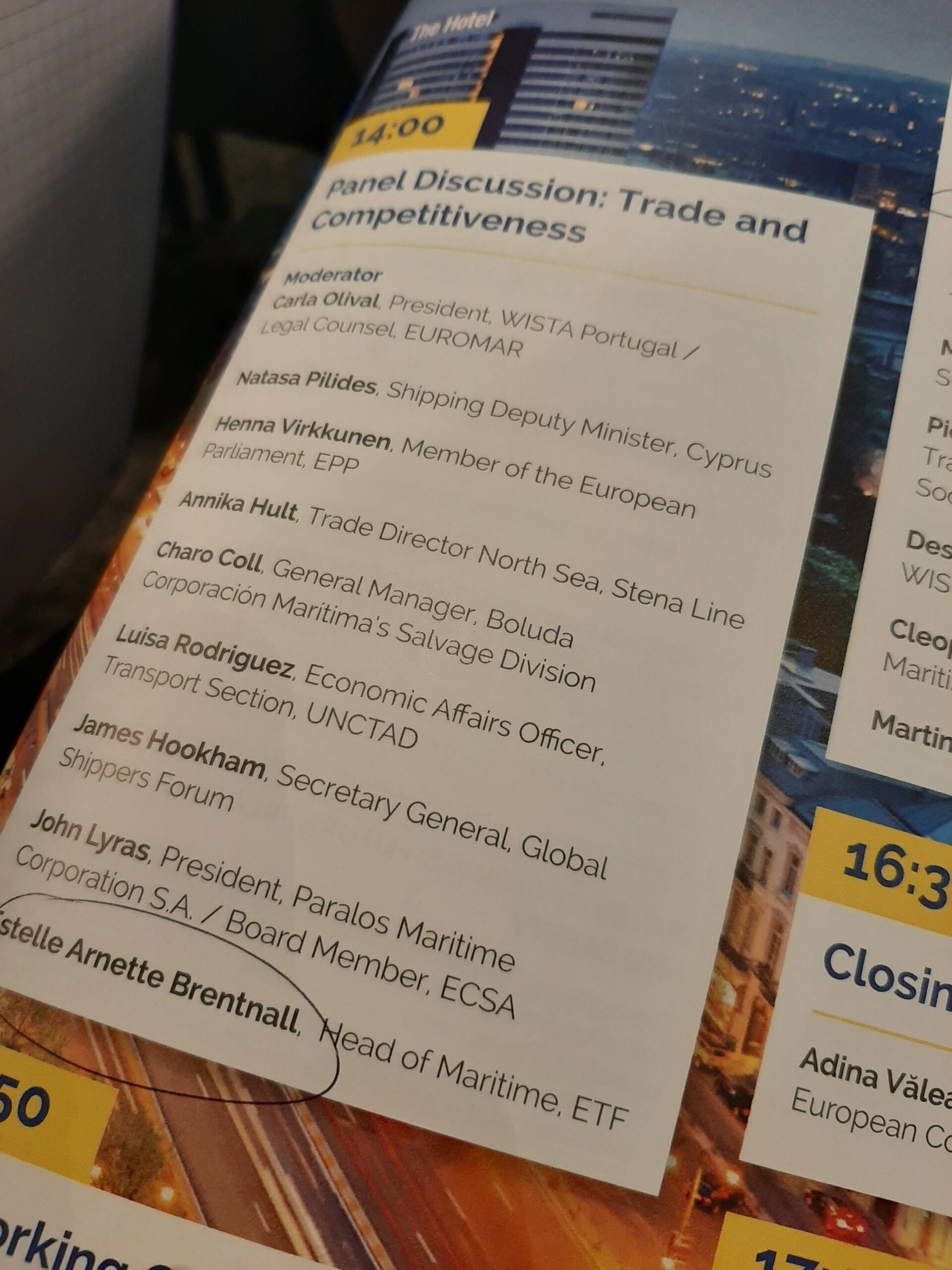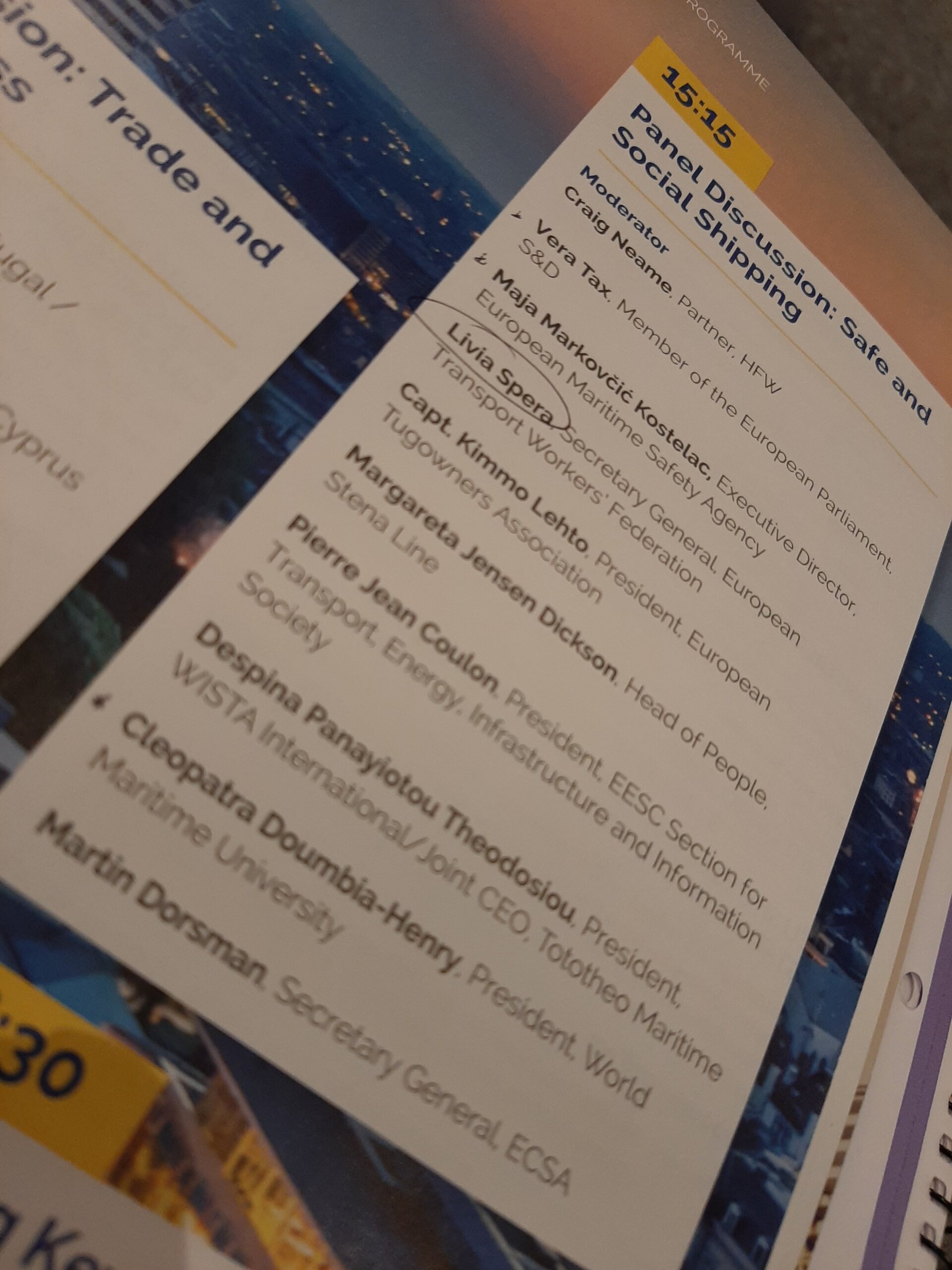 The afternoon panel discussions on trade and competitiveness and safe and social shipping included ETF representatives – Estelle Brentnall and Livia Spera.
