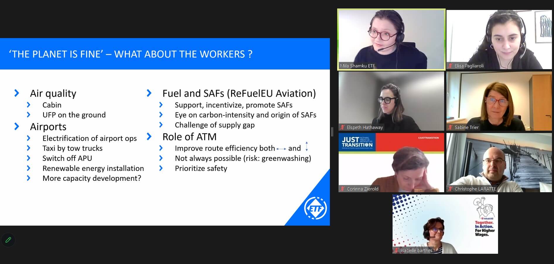 “Instead of focusing our debate on potential trade-offs between the different transport modes, and between manufacturing on the one hand and transport services on the other, our joint discussions will contribute to a mutual understanding of a Just Transition and build stronger trade union alliances.”