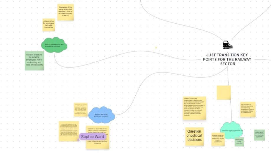 Each of the four workshops focused on one of the mobility subsectors: maritime, aviation, road transport and railways. Participants came together to identify and discuss common challenges and opportunities, and differences in the context of decarbonisation. They also looked at what a Just Transition would mean for both the vehicle and equipment manufacturing workers and transport service workers. The aim was to understand better the trends, impacts and challenges of the twin transition and propose strategies that could guarantee a fair and just transition for all workers.